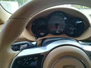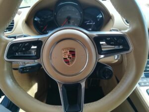 Equipaggiamento in pelle totale beige, sedili sportivi elettrici e riscaldabili, cerchi in lega da 20″ Carrera Classic, Capote blu, Pacchetto sportivo, Sensori di parcheggio anteriori e posteriori con telecamera posteriore, specchietti elettrici e molto altro ancora.
